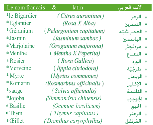 توجد في العالم توجد العديد من الأعشاب الطبية والعطرية الطبيعية ( أكثر من 80 نبات ) يمكن استغلالها و قابلة للتكثيف و من أهمها :